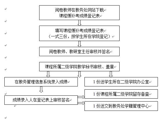 (2)请各卷教师于37日(周三)前将缓补考成绩登记表(一式三份)交课程所在二级学院(部)办公室。
