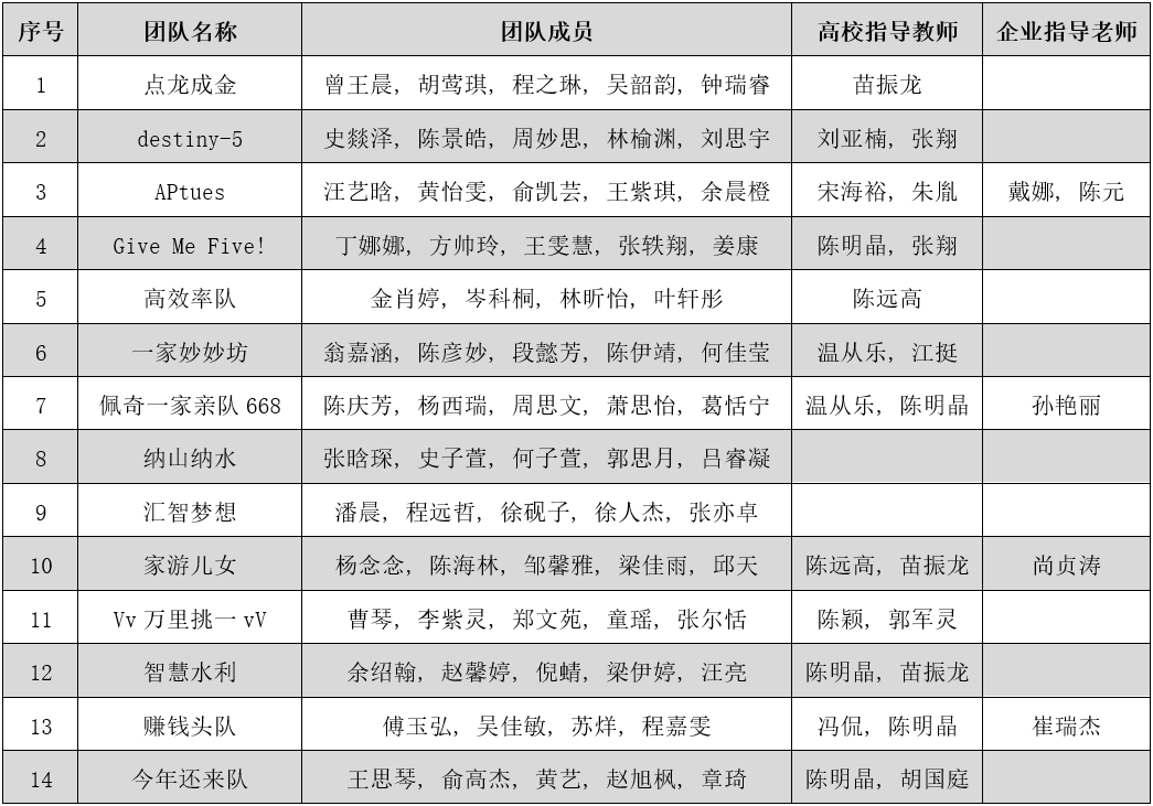 附表1:校赛答辩团队及顺序: