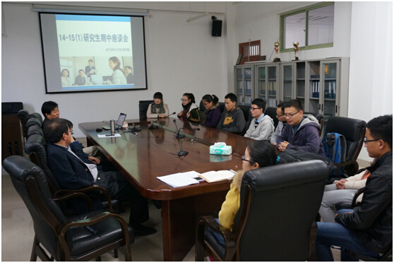 在9-404会议室举行了2014-2015学年第一学期研究生期中座谈会。张帅、姚建荣、王继林等三位导师代表以及信息学院全体研究生同学参加了本次座谈会。会上,老师们首先了解了14级研究生导师双向选择及入学以来的学习情况,强调同学们要加强文献阅读与论文写作。随后,张帅老师通报了12级研究生奚程瑜和朱媛同学获得哔咔漫画