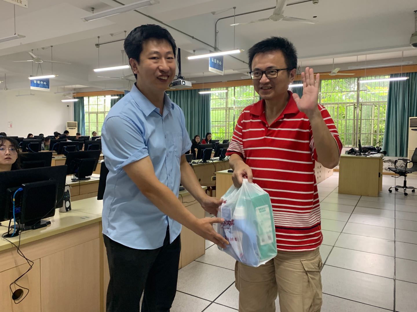 分工会组织开展暑期“送清凉”活动,学院党政班子成员参加活动,代表学院为坚守工作岗位的教职员工送上了分工会准备的消暑慰问品。