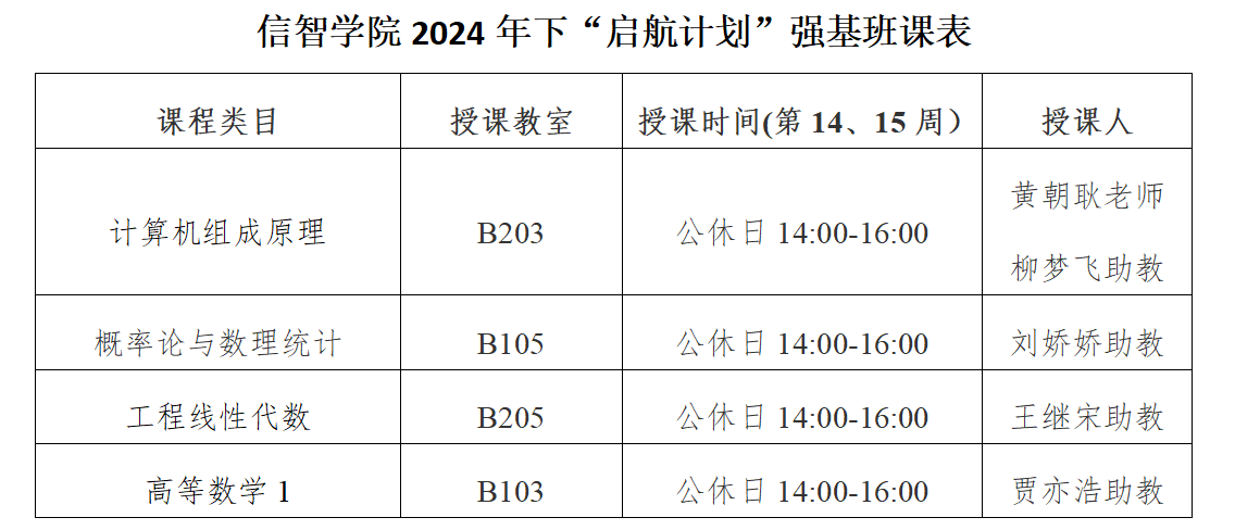 第九期“启航计划”强基班开班仪式在B楼103教室举行。学院《计算机组成原理》专业课教师黄朝耿副教授、助困辅导员史光花、学生助教及补习班全体成员参加了仪式。