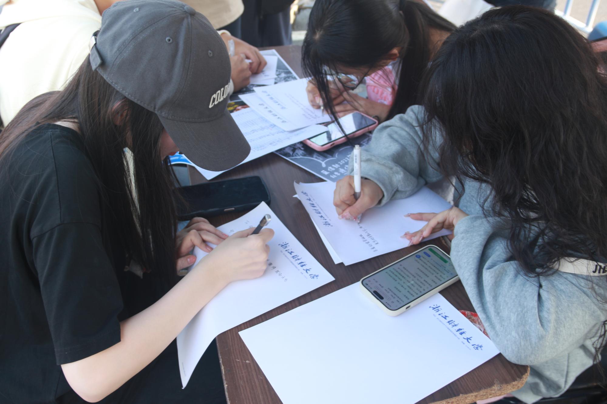 用感情浸润笔尖,细细斟酌妙词,纸短情长,道不尽万千思绪。同学们纷纷执笔,深情吐露自己的心声,一笔一划书写对辛勤工作的宿管阿姨、安保人员和值班老师的感恩和真挚祝福。