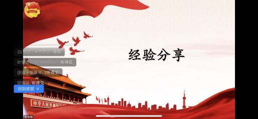 “十佳团支部”评选第一名——20电子商务1班的班长林佳奇进行经验分享。林同学介绍了许多班级团务工作运转中存在问题,提出有利举措。在一些方面,制定学习宣传贯彻方案,明确学习重点内容、要求,组织团员结合实际抓落实。通过热议班级团员们谈感想、话收获把学习成果转化为工作热情,扎实做好班级各项工作。团日活动应能够“走出去”以及团干部在工作时应摆正心态,使参与会议的团干部收获满满。