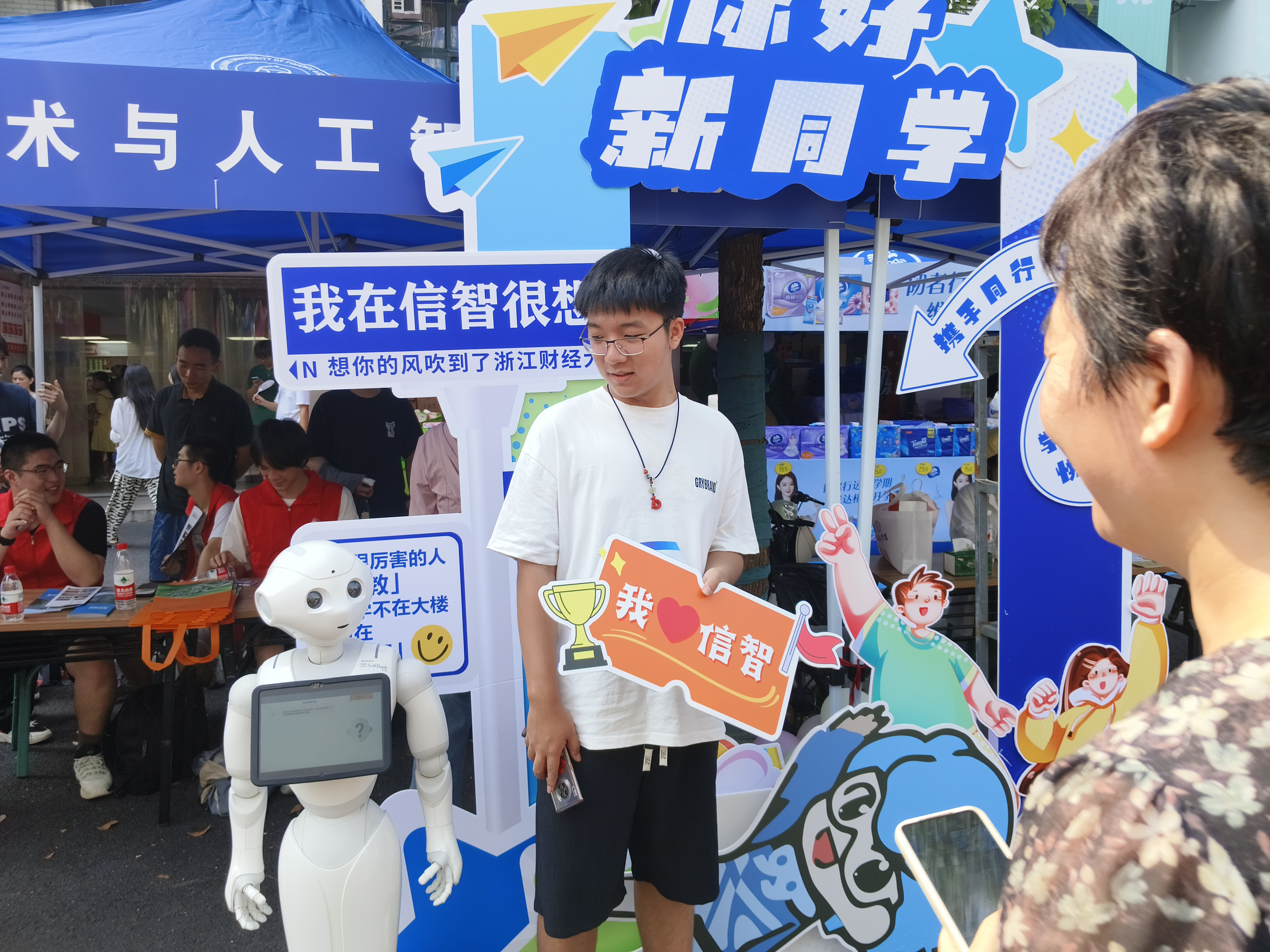 智能机器人信小智也挥舞着他的双手期待每一位未来九号航线故事的书写者据悉信智学院今年特别引入智能机器人参与迎新,它们不仅能够提供信息查询、路线指引,还能与同学们进行如智能问答、趣味游戏等互动,展现学院风采同学们在轻松愉快的氛围中感受到专业魅力。