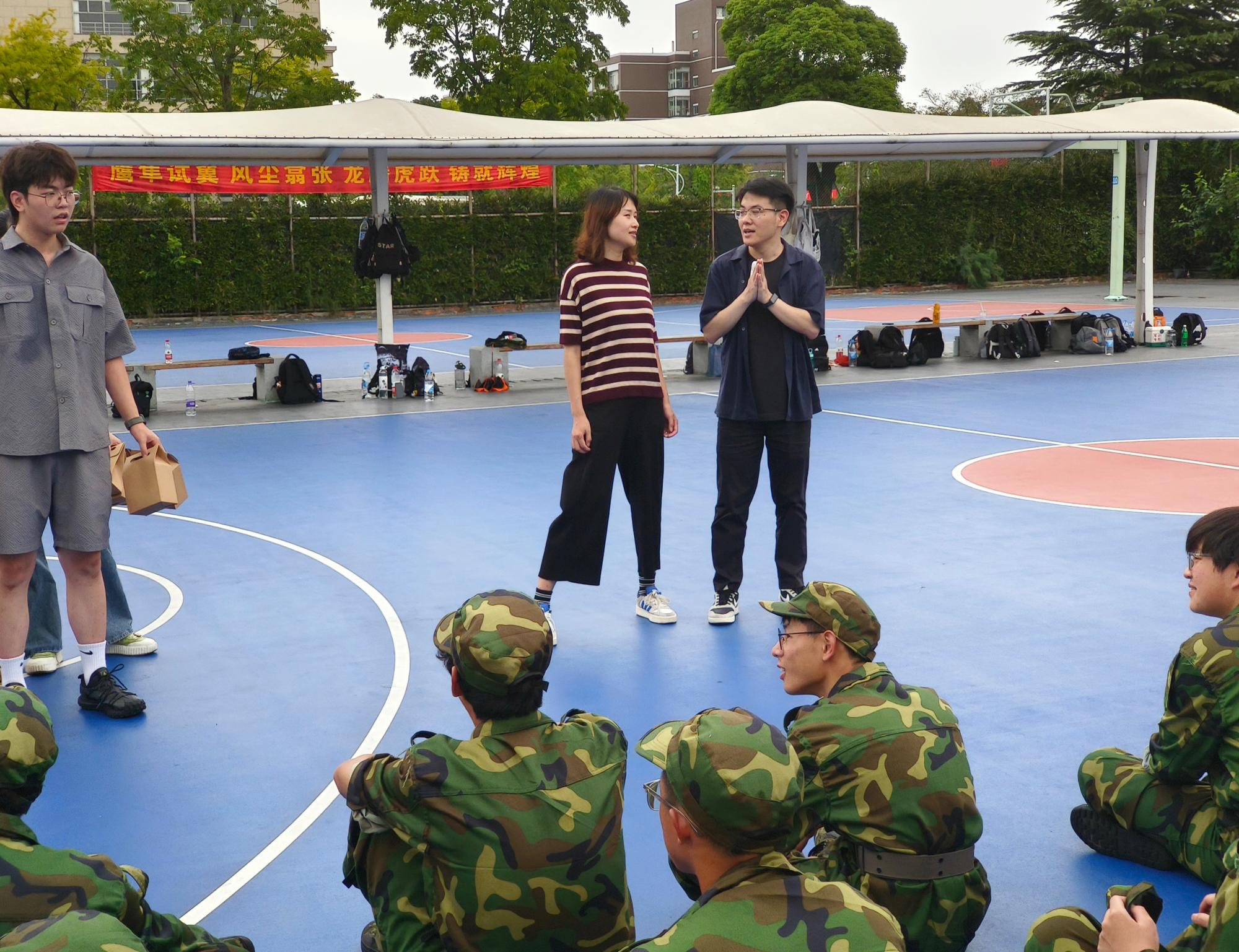 在此过程中,吴老师温柔地叮嘱大家要保重身体,注意休息,并期待每位同学能够圆满完成军训的每一项挑战;洪老师则细致入微地关心大家要合理安排作息、饮食,保证充足睡眠,在严格遵守纪律的同时,遇到身体不适也应第一时间反馈。