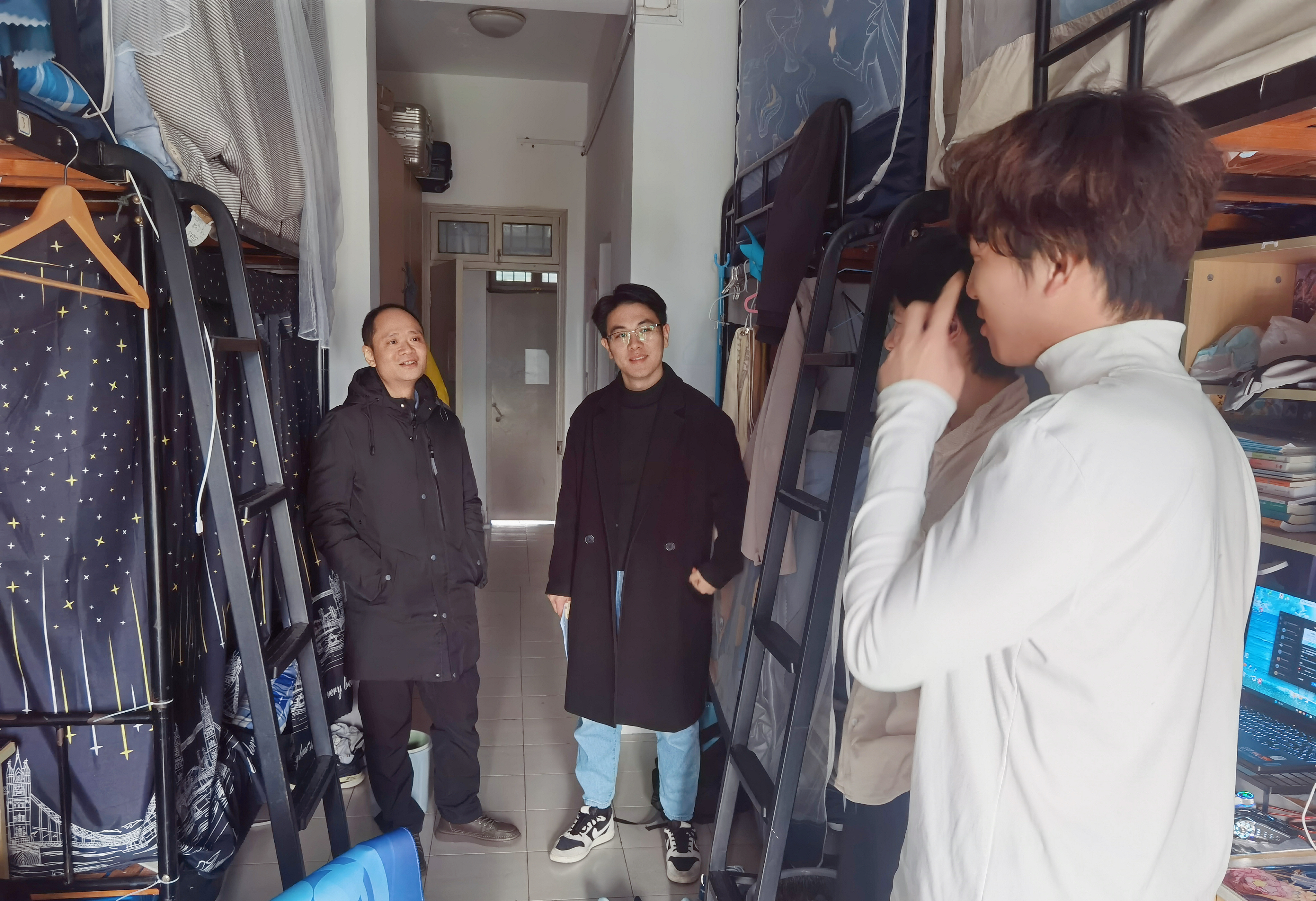 走访中,老师们不仅关心同学们的日常生活,更将学风教育、考试诚信教育及安全教育融入其中,与同学们面对面交流互动。