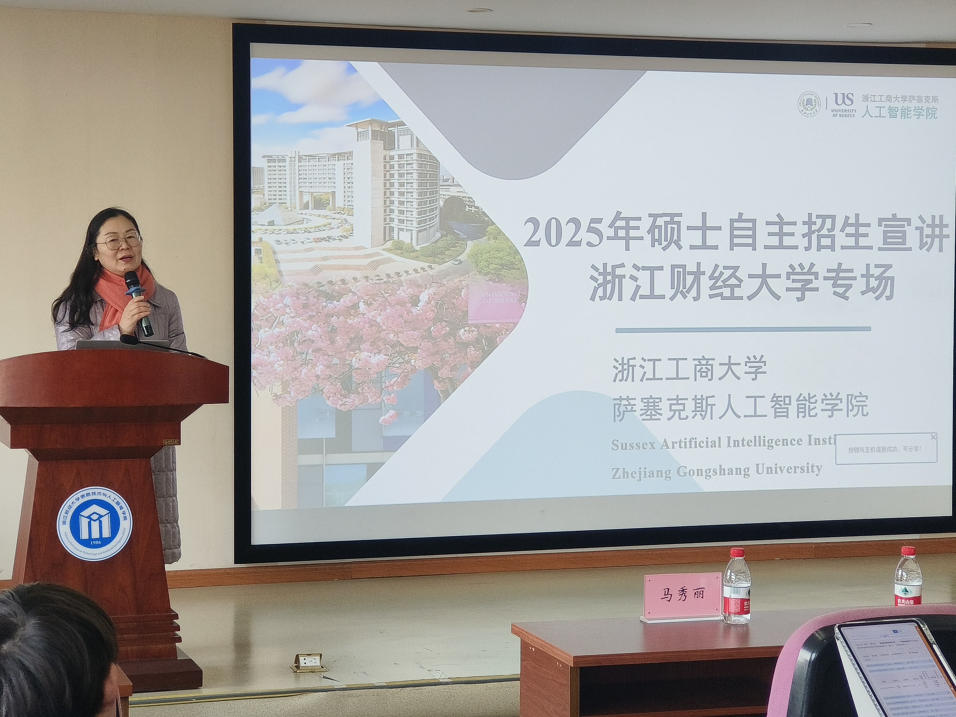 9302报告厅顺利开展。浙江工商大学萨塞克斯人工智能学院招生就业办马秀丽老师受邀分享。专题分享由院学办主任洪宝华主持。