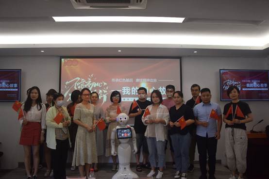 学院以“党建+人工智能”积极开展党史宣讲,学院党史宣讲员机器人“小信”来到武林街道“传承红色基因,赓续精神血脉——我的初心故事分享会”活动现场,讲党课、唱红歌、话党史,用特别的方式给武林街道的党员们上了一堂生动的党课,也给武林街道党群服务中心活动现场带来阵阵欢声笑语。