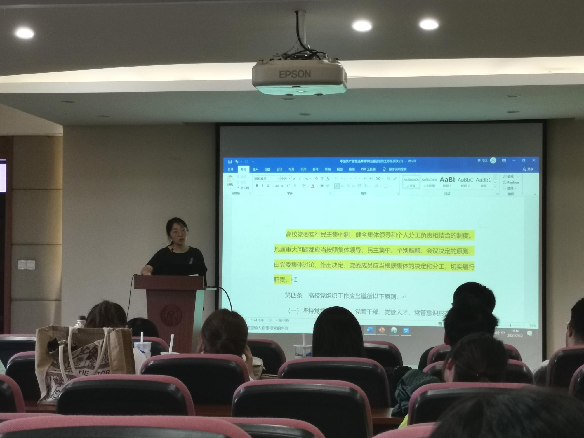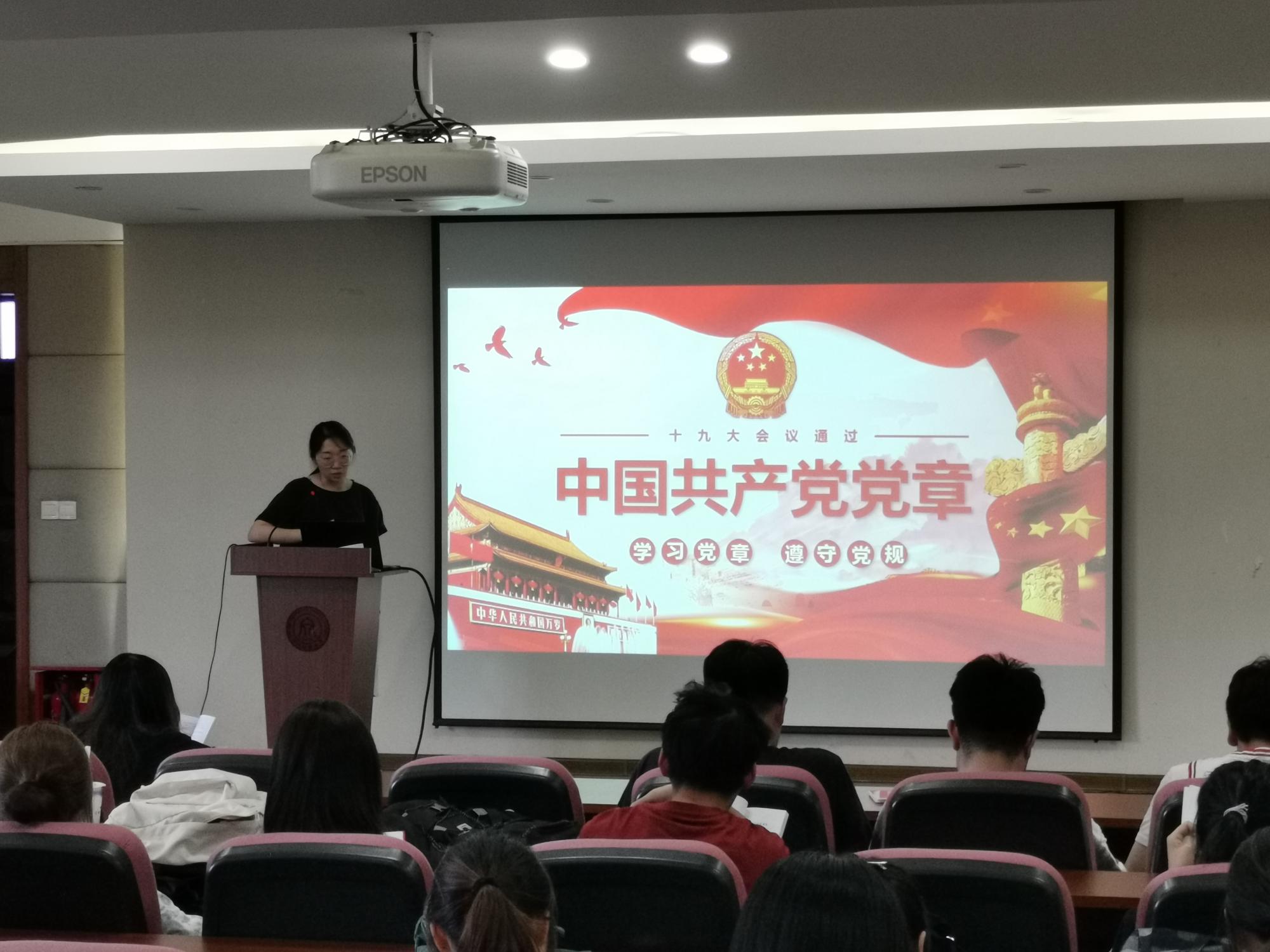 会上,李靓老师还带领全体党员学习和理解《中国共产党普通高等学校基层组织工作条例》以及《中国共产党章程》,并希望在场党员能强化自身的政治意识,真正把党章作为加强党性修养的根本标准,达到内化于心、外化于行的目的。
