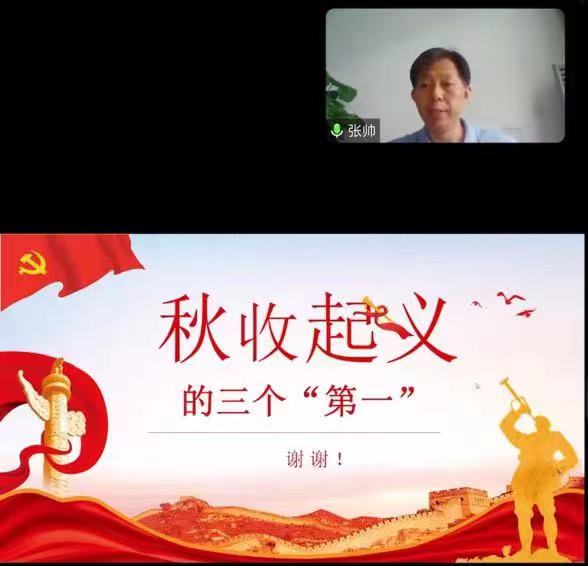 院长、党委副书记张帅老师以“秋收起义的三个第一”为题,介绍了人民军队历史上第一面军旗诞生、第一次确立支部建在连上的制度、入党誓词中第一次加入永不叛党,分析了秋收起义对中国革命的历史产生的影响,鼓励信智学子努力学习、报效祖国,在祖国需要的时候挺身而出,用自己所学的知识和技术,为党和国家的发展建设做出贡献。