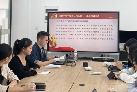 汪志强分享了习近平总书记在浙江考察时讲话精神的重要内容,以习近平总书记在义乌市后宅街道李祖村考察乡村振兴为例,分析了当代大学生党员回乡创业发展的机遇,强调要关注和利用好相关平台和政策,把握好另一个就业赛道。