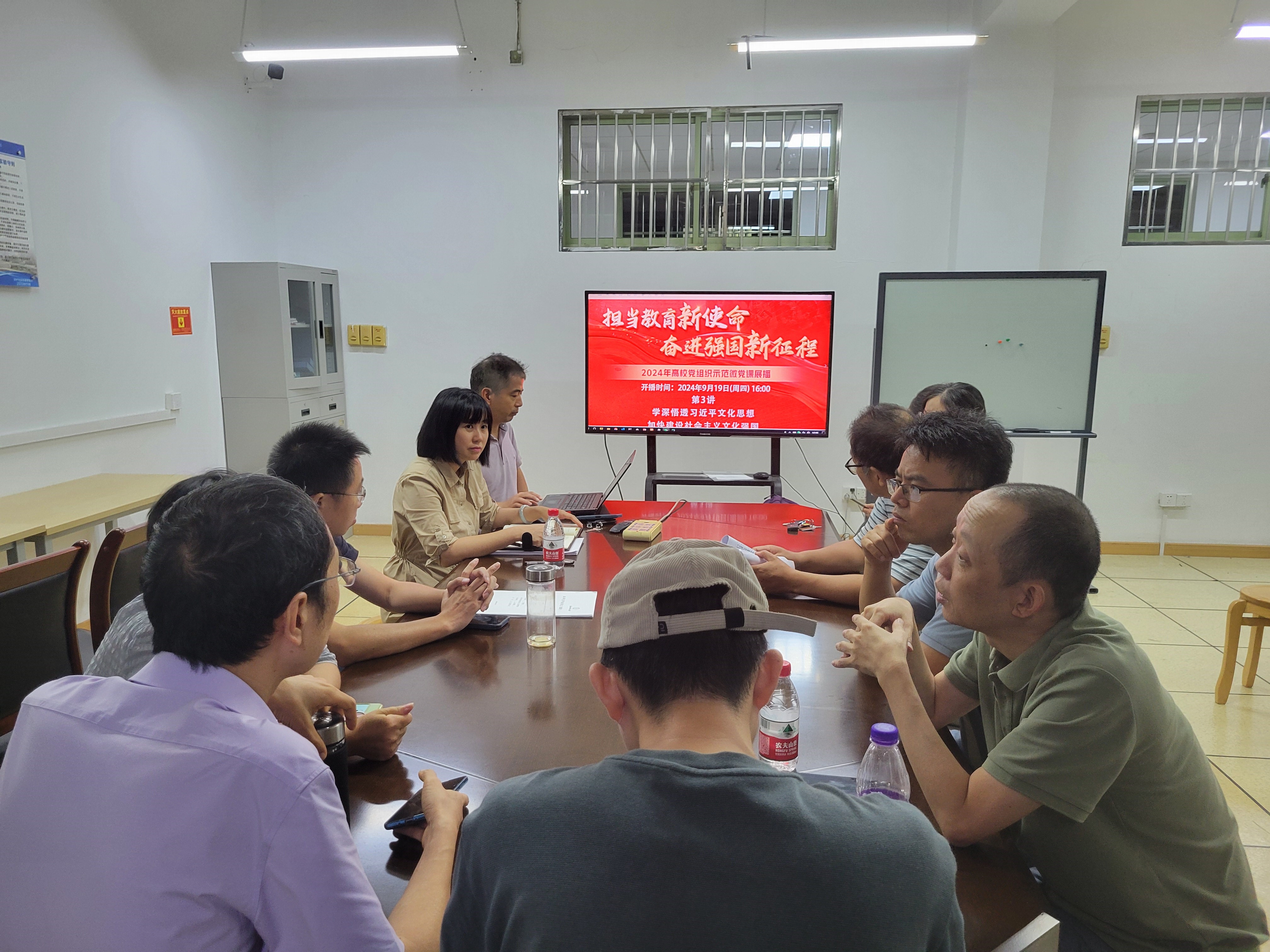 教工第一党支部于学院楼103室开展学习2024年高校党组织示范微党课《学深悟透习近平文化思想 加快建设社会主义文化强国》的主题党日活动,此次会议由支部书记朱凌主持,支部全体党员参与。