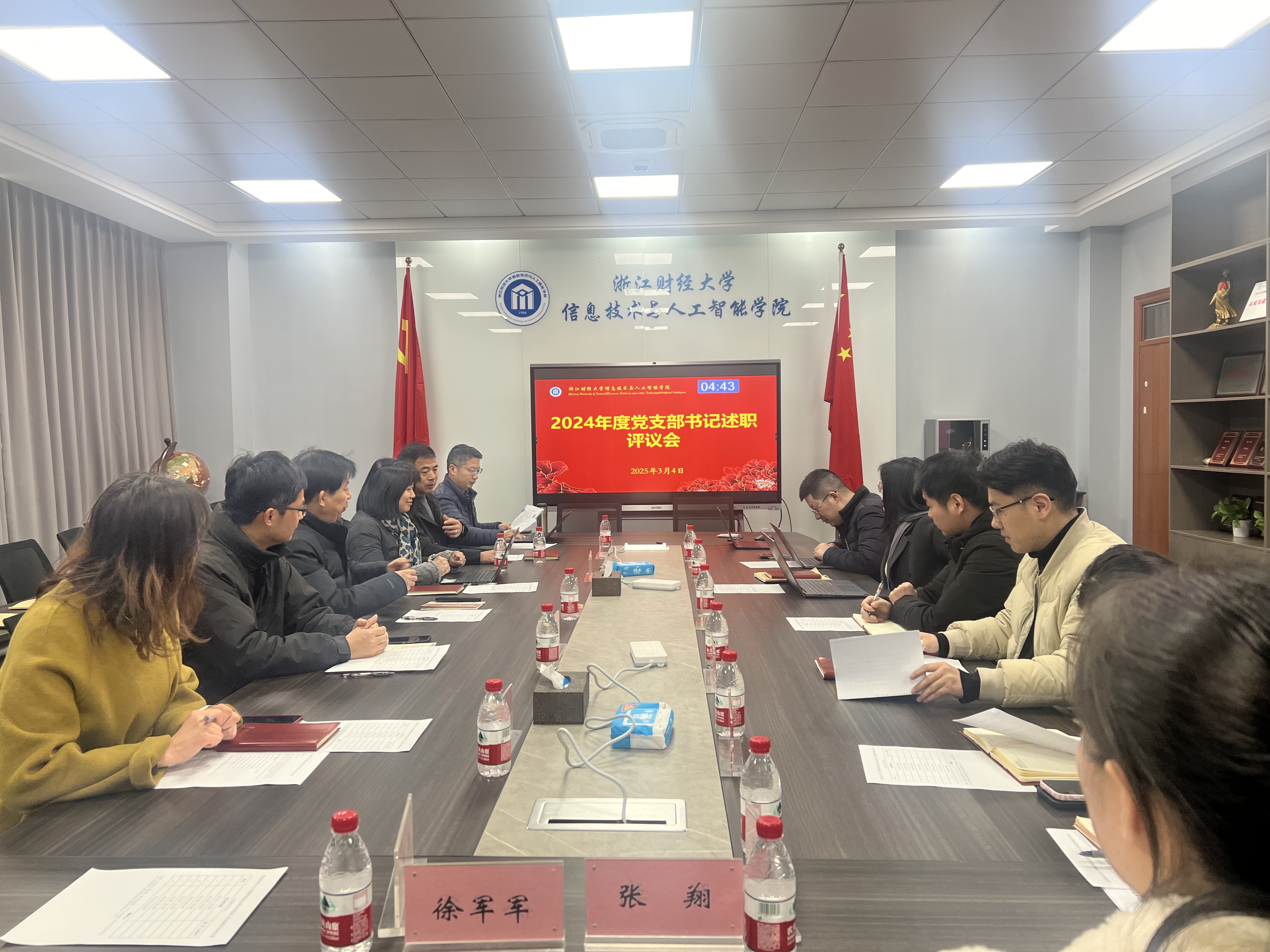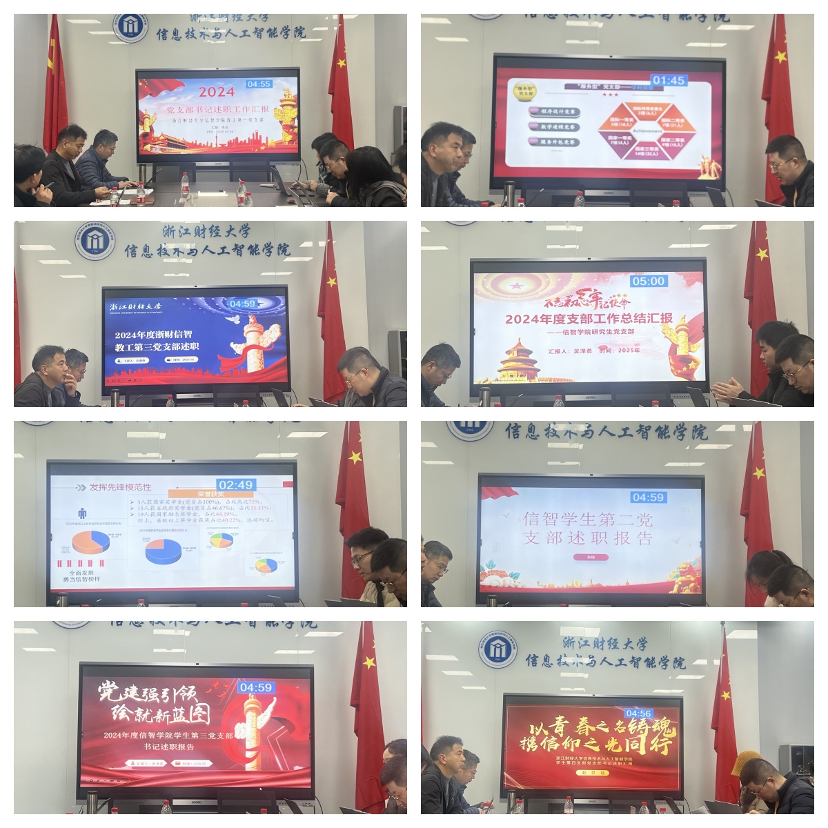 会上,学院8个党支部书记依次述职,围绕党支部政治建设、思想建设、组织建设、作风建设及榜样引领等,结合教学科研、人才培养、志愿服务等实际工作,系统汇报了2024年度支部建设成果与特色亮点。各支部在强化理论武装、规范组织生活、创新主题党日活动、服务师生群众等方面展现了积极作为,如推动课程思政与专业教育深度融合、组织党员投身社会公益实践、搭建师生科研互助平台等。