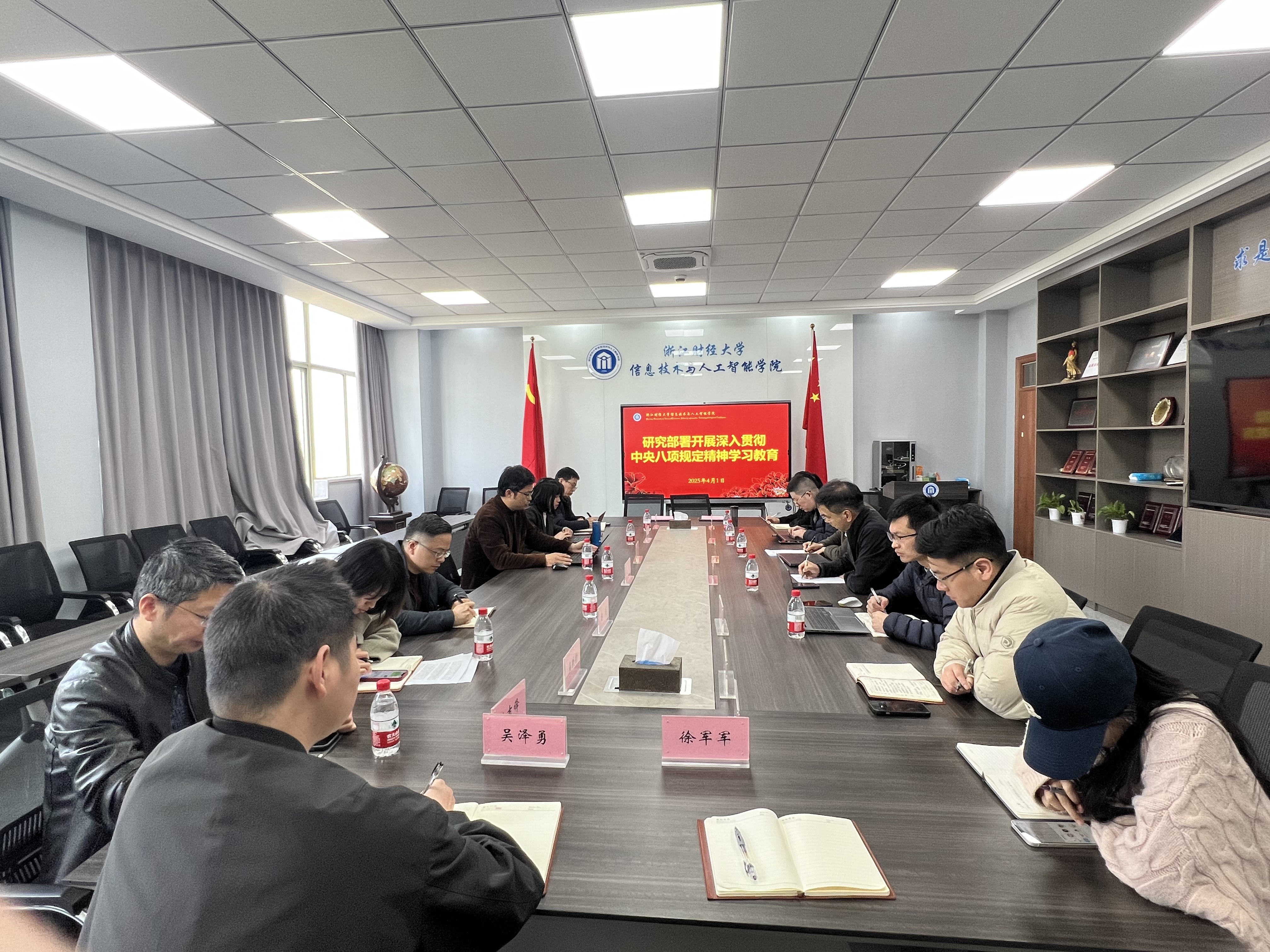 会议以“第一议题”形式专题学习了习近平总书记关于加强党的作风建设的重要论述,中央八项规定及其实施细则精神等,会议指出,在全党开展深入贯彻中央八项规定精神学习教育,是今年党建工作的重要政治任务,是巩固深化习近平新时代中国特色社会主义思想主题教育和党纪学习教育成果、纵深推进全面从严治党的重要举措,是密切党群干群关系、巩固党的执政基础的必然要求,是推进中国式现代化的有力保障。全院上下要从坚定拥护“两个确立”、坚决做到“两个维护”的政治高度,深刻把握中央部署开展学习教育的战略考量和内在逻辑,增强扎实开展学习教育的思想自觉、政治自觉、行动自觉,切实把思想和行动统一到党中央决策部署上来。