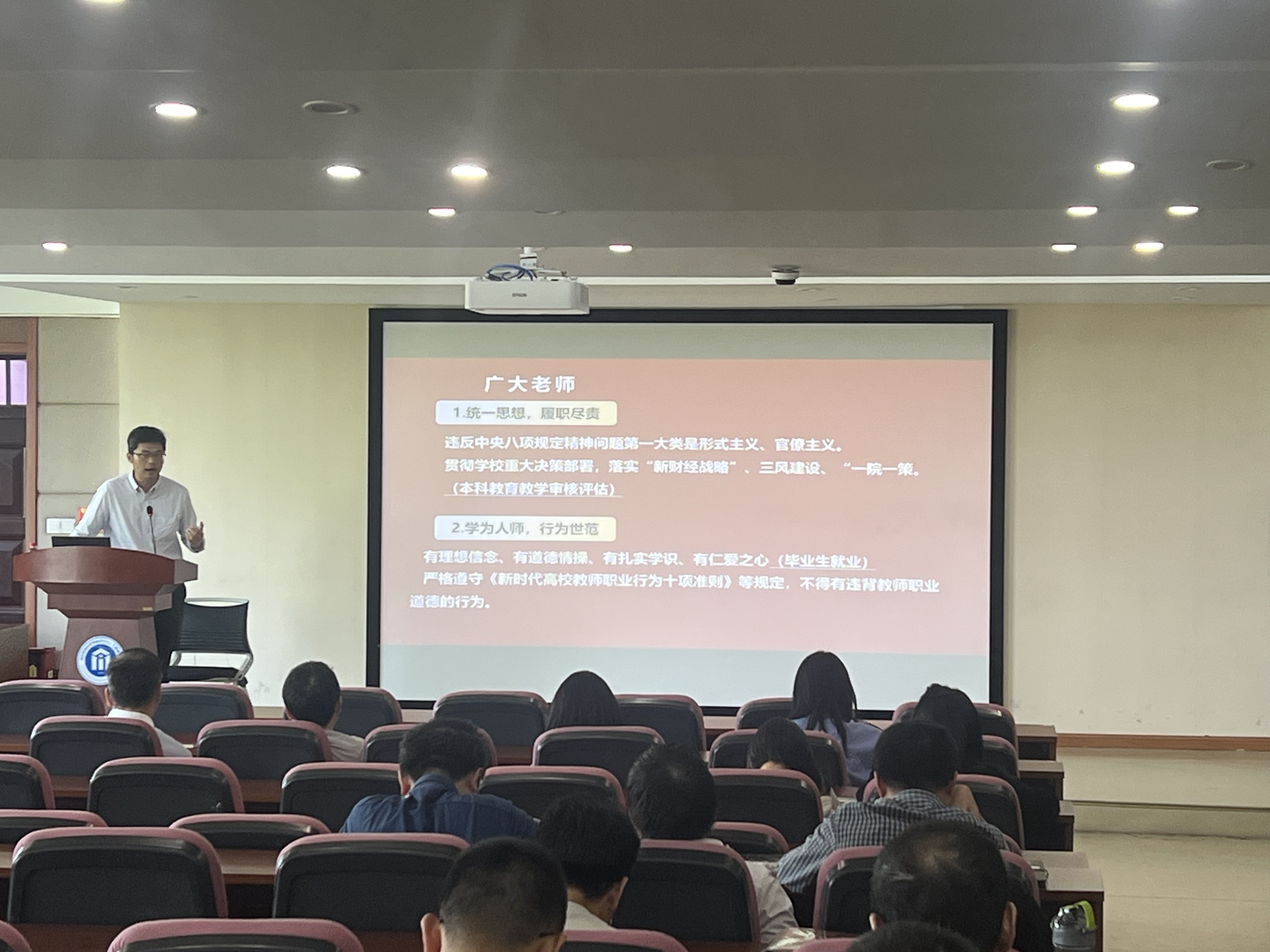 4月29日,学院开展“书记讲党课”,组织全体党员教师深入学习习近平总书记关于党的作风建设的重要论述和中央八项规定精神,结合“党建领航赋能教育教学高质量发展”基层党支部建设主题,扎实推动学习教育走深走实。