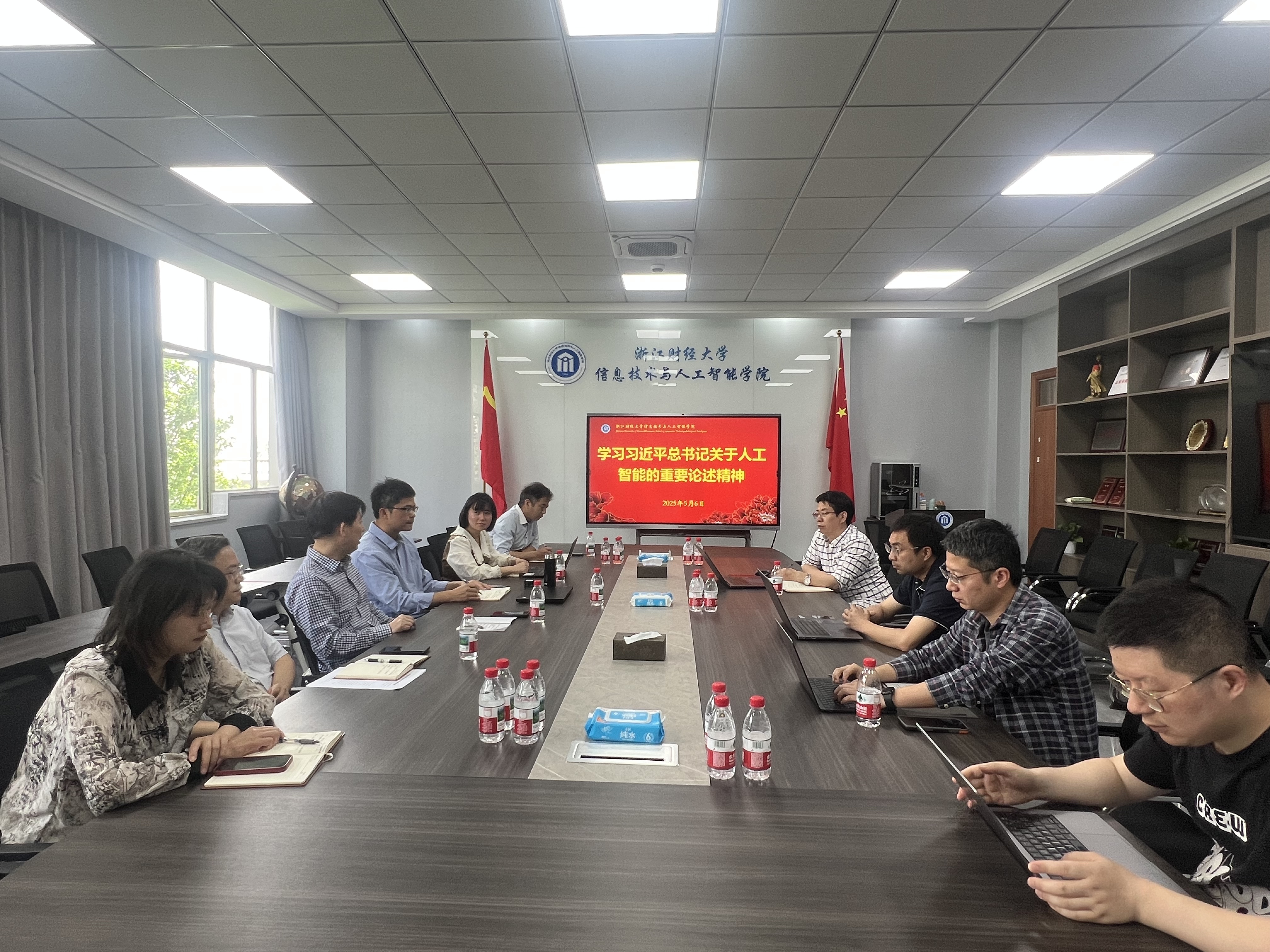 5月6日,学院党委理论学习中心组在404会议室召开会议,专题学习习近平总书记关于人工智能的重要论述。学院班子成员、各系系主任、教工支部书记等出席会议。