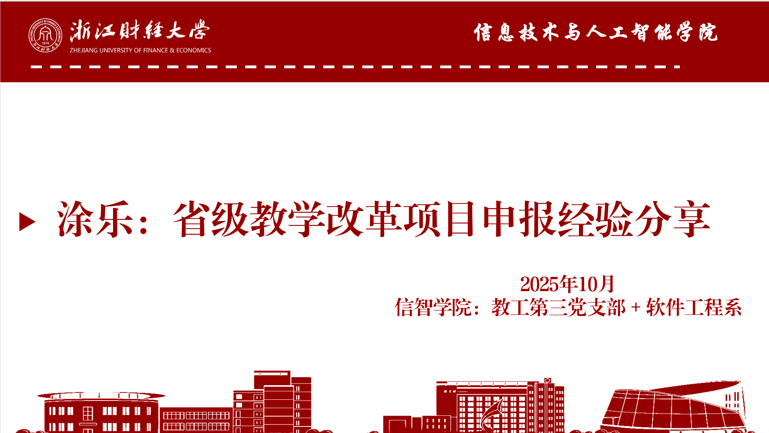 10月底,支部围绕“教学项目申报”与“软件系统智能开发”主题开展分享会,涂乐老师作为主讲人,带来两场高实用性的经验分享。在省级教学改革项目申报专题中,涂乐老师系统梳理了省级教改项目的申报数量、年份分布、立项情况等基础信息,结合自身申报经历,从选题背景的精准定位、结题要求的提前准备、项目背景的深度挖掘,到研究计划的科学制定与阶段推进,逐一拆解申报关键环节,为在场教师提供“全流程指南”。