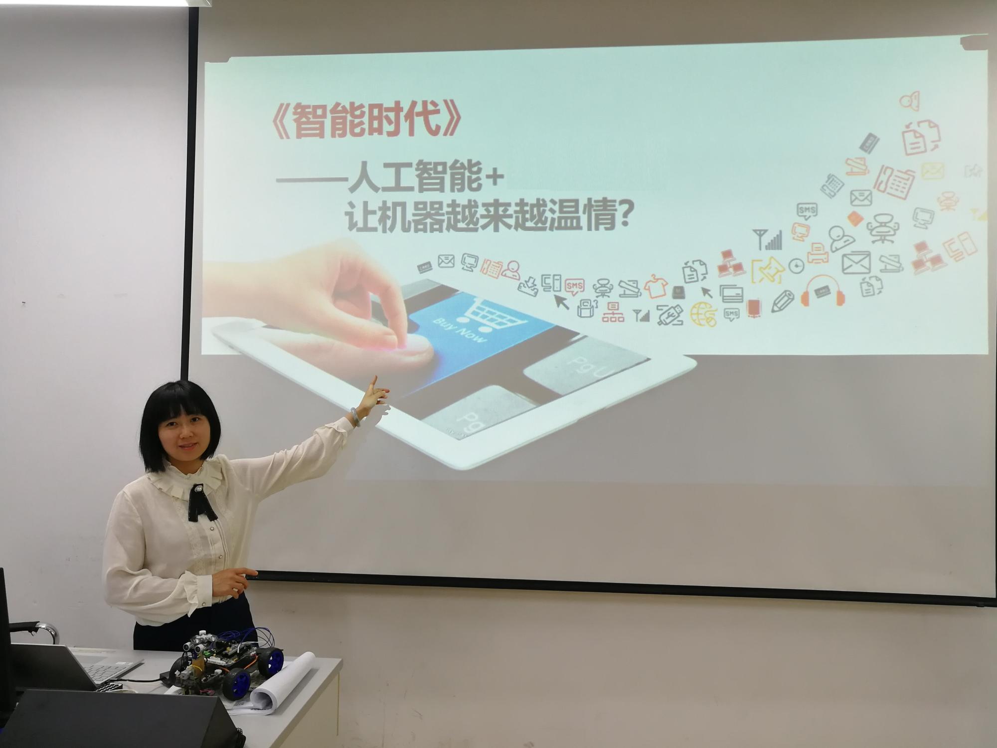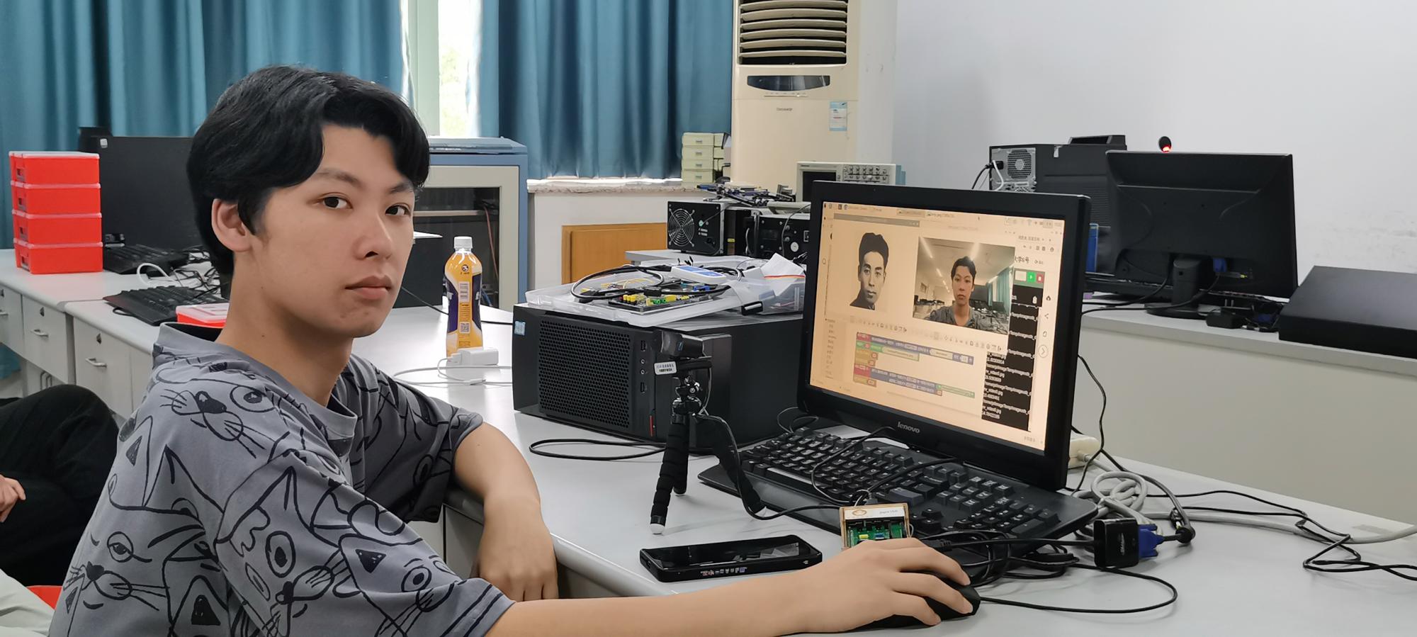 信息管理与人工智能学院的实验室里,朱凌老师正在给学生们上《智能时代》通识教育课。由于授课对象是文理科学生兼有,同学们编程基础不一,有些甚至是零基础。针对这一情况,朱凌老师大胆尝试教学改革,制定创新教学方案,与古德微机器人共建课程,积极探索产学合作协同育人的人才培养新模式,在人工智能通识教育中将知识与技能融合,采用树莓派图形化编程技术设计了一系列人脸识别、语音识别、文字识别、机器翻译、物联网控制、智能硬件等虚拟仿真实验教学案例,帮助同学们更形象更真切地体验人工智能时代中信息物理空间融合的程序设计在我们工作、学习、生活中的强大应用。