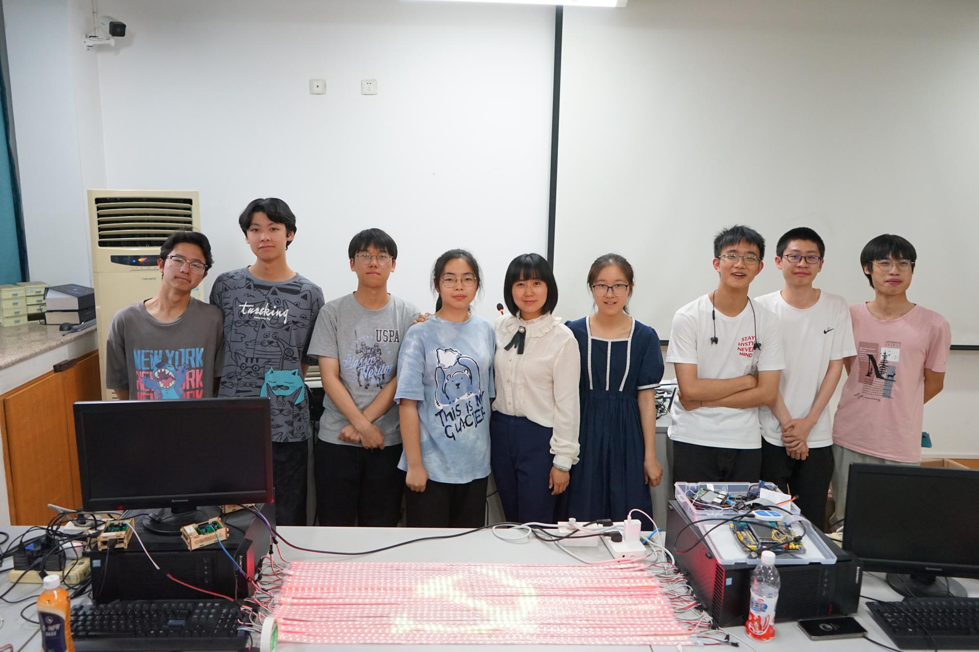 “礼赞百年心向党”——朱凌老师带领《智能时代》中的同学们用数十条灯带通过树莓派编程创作动感绘出了一个大大的党徽,用程序员独有的浪漫方式,向中国共产党成立一百周年献上了自己最美好最热忱的祝福。