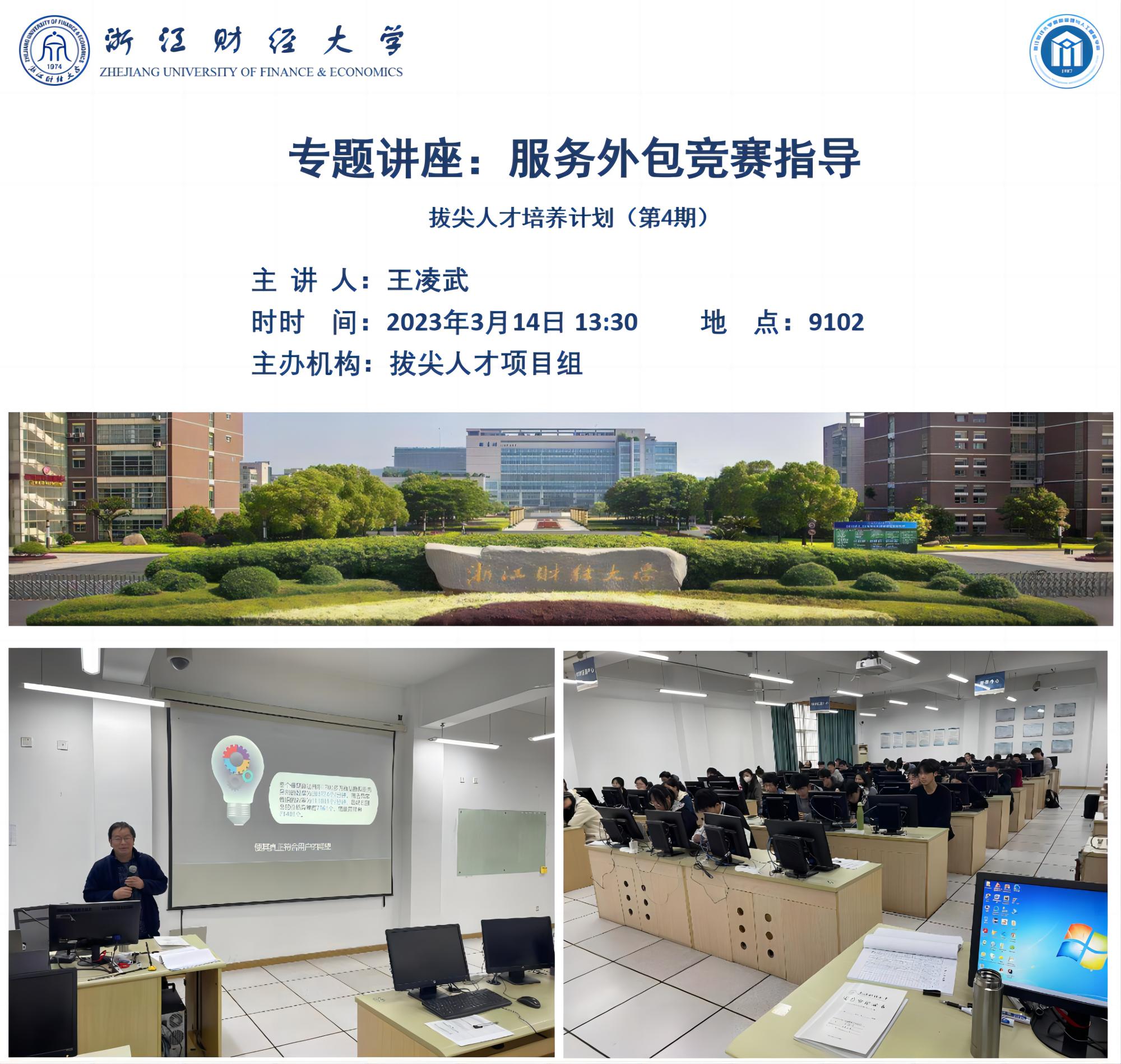 2023年3月14日13点30分,2022年度拔尖人才培养计划(第4期)在9号楼102教室成功举办。王凌武老师以“服务外包竞赛指导”为主题,让同学们全面了解了参加服务外包竞赛项目申报的重要性以及申报前准备的注意事项。