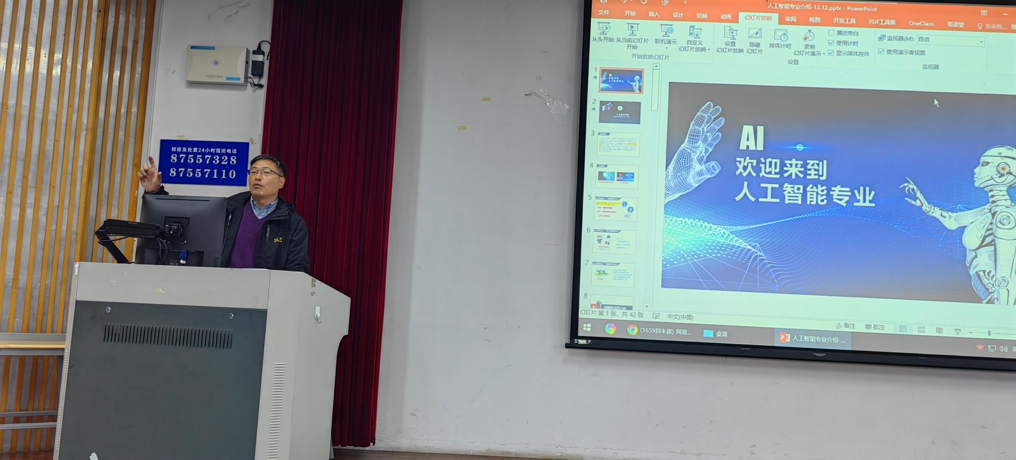 为了帮助2023级新生深入了解专业培养目标、培养方案及相关政策,12月12日下午,2023级人工智能专业新生大会在A201举行。出席本次大会的有人工智能专业负责人张志强、系主任陈琰宏及部分专业教师代表、学长代表以及全体2023级人工智能专业本科生共计180余人。