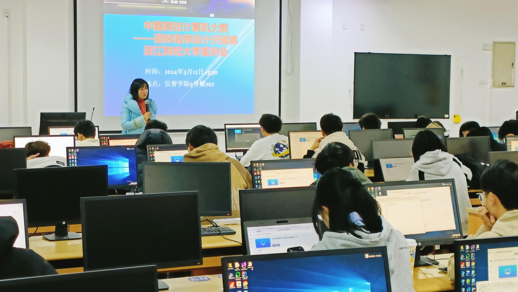 宣讲动员会由竞赛负责人朱凌老师主持。会上,朱凌老师详尽地阐述了“中国高校计算机大赛——团体程序设计天梯赛”的赛制和比赛注意事项,以及我校在过往天梯赛中取得的卓越成绩,旨在鼓励同学们踊跃报名,积极参与竞赛。此外,朱凌老师为大家介绍了与竞赛相关的网站及学习资源,并鼓励大家:“每一个成功者,都有一个共同点,勇于开始,永不放弃”。