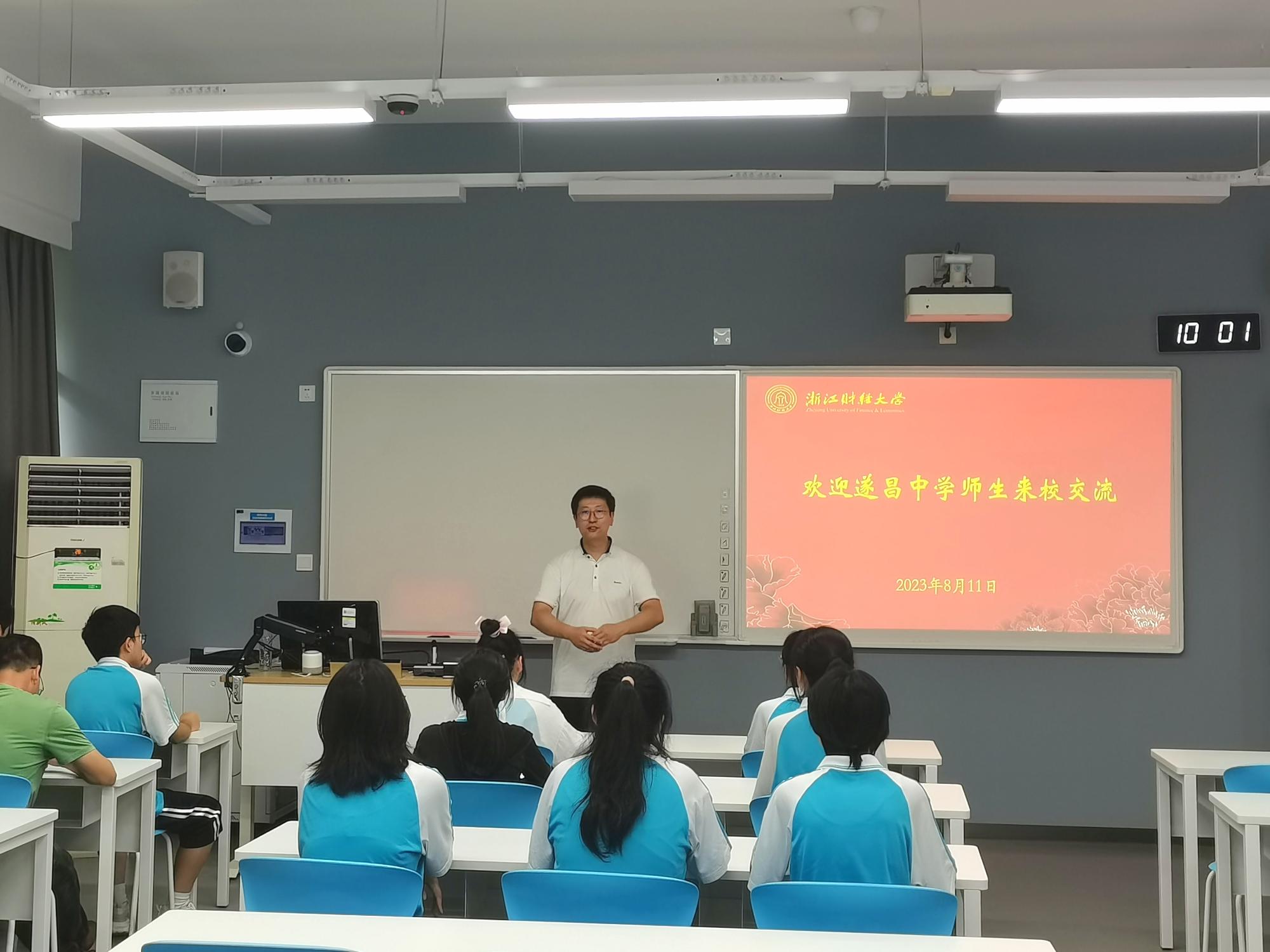 遂昌中学师生们还参观了我校智慧教室,体验了大学课堂。田聪介绍了学校和学院的基本情况,学生就业升学方向及招生有关政策,并与学生们进行了互动交流,分享大学阶段的学习和生活经验。