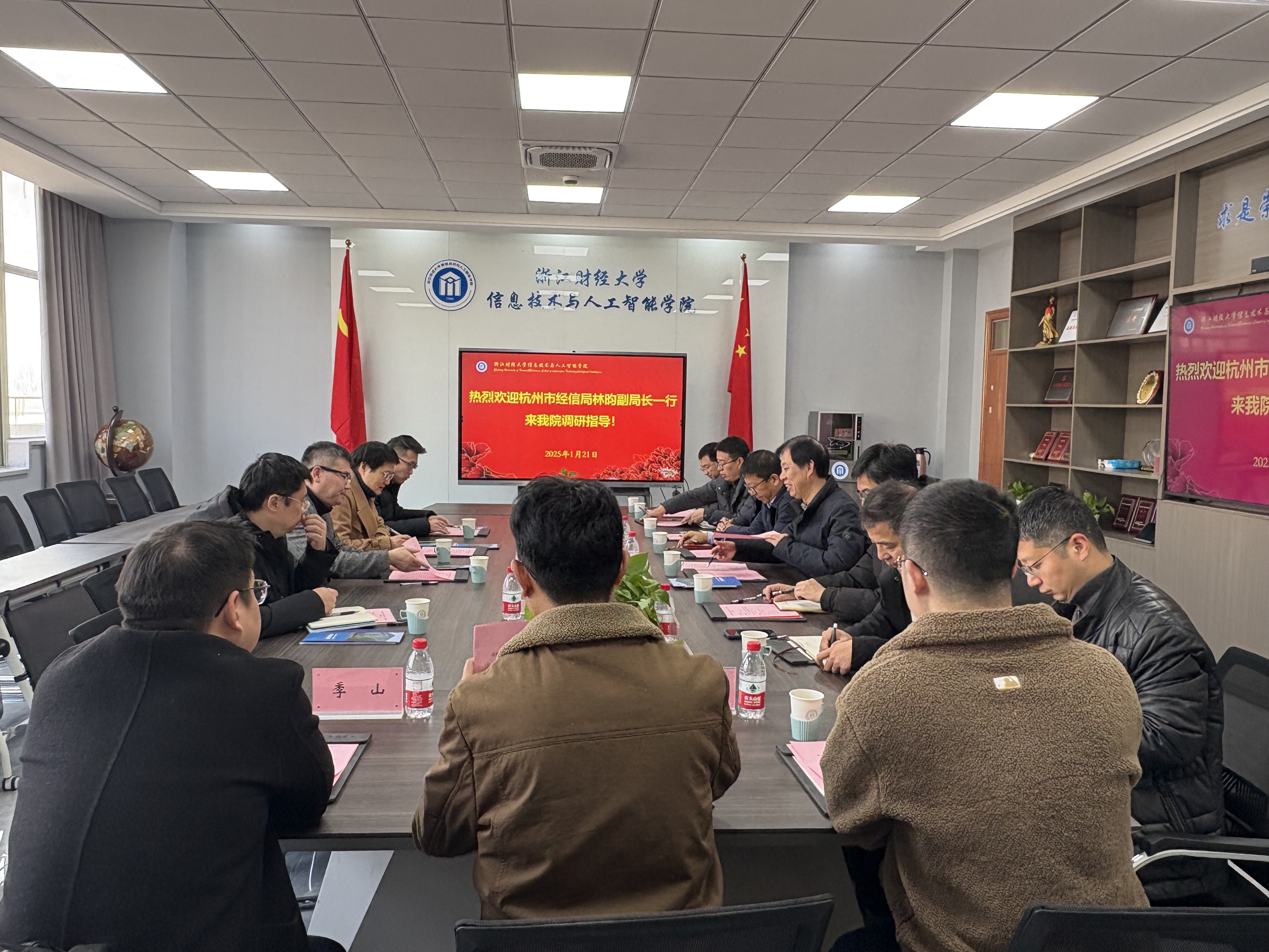 1月21日,杭州市经济和信息化局副局长林昀、产业数字化推进处副处长梁超、软件和信息服务业处副处长沈辉、技术创新处(人工智能产业处)陈昊一行调研哔咔漫画 ,学校社会合作处处长杨剑勇、学院院长张帅、学院党委书记吴翼泽等陪同。