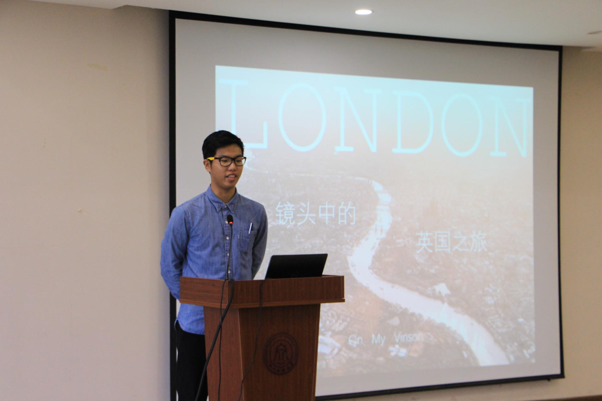 四名学生代表通过精美的ppt,从不同的视角向大家展示了英国学习期间的所见所闻、所学所感。娄凌豪同学以“镜头中的英国之旅”为主题向大家汇报了在英期间的游学内容,并向大家展示了一张张独具匠心的照片,再现当日场景,勾起了大家对游学期间的各种回忆以及同学们的向往。
