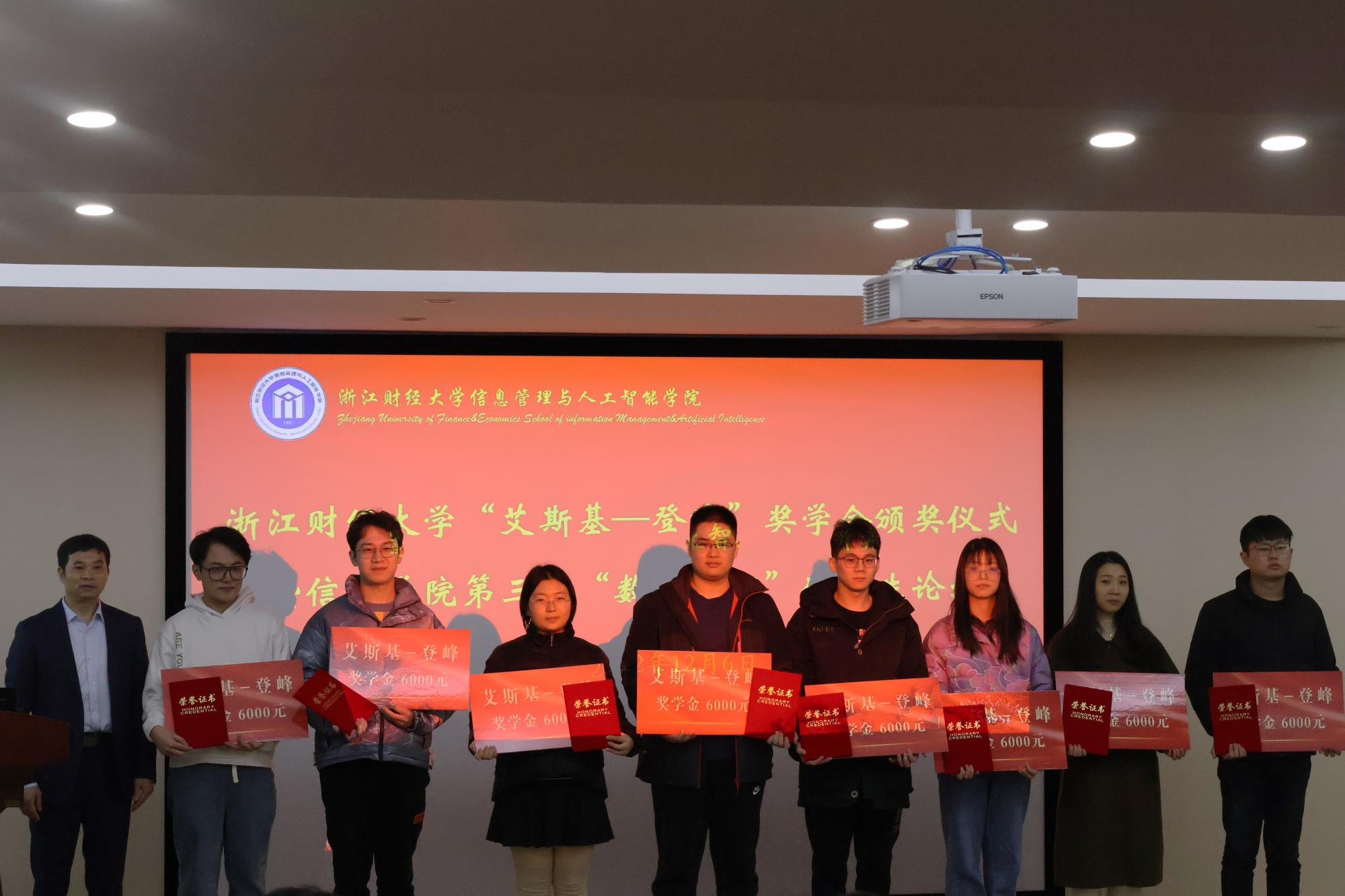 12月6日下午,学院“艾斯基—登峰”奖学金颁奖仪式暨“数智钱潮”研究生论坛第三期在9302报告厅举行。学院党政班子领导,张文宇教授,杭州艾斯基光学仪器有限公司总经理、2008届校友王建平,“艾斯基—登峰”奖学金获奖代表,学院研究生等参加会议,会议由副院长陈远高主持。