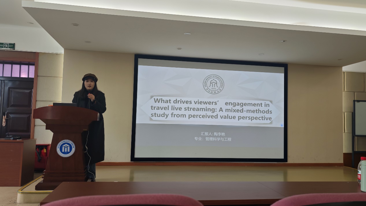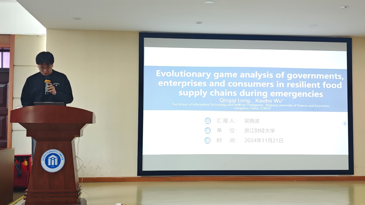 首先,22级管理科学与工程专业的李金熹、陶李艳、田锦月同学分别就“Dynamic Spatio-Temporal Multi-Characteristic Pattern Fusion for Traffic Prediction”、“A Z-number-based large-scale group decision-making method considering conflict behaviors in a social network environment”、“What drives viewers’ engagement in travel live streaming: A mixed-methods study from perceived value perspective”等主题进行了详细的探讨与分享。随后吴晓波和余望之同学分享了“紧急情况下韧性食品供应链中政府、企业和消费者的进化博弈分析”和“论文查找与阅读技巧”。他们通过分享自己的经验和成果,不仅激发了学生们的兴趣,也鼓励大家思考如何将所学应用于实际生活中。这些分享为学生们提供了新的思路,有助于他们对不同的领域和思维方式进行更深入的了解。