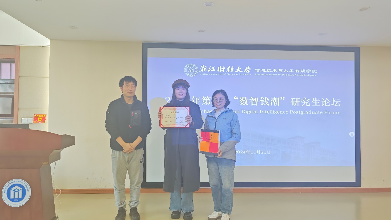 经过点评老师的合议,最终评选出了本期论坛的优秀分享者——陶李艳同学,她的报告内容深入浅出,思路清晰,引发与会者的深思,并且在学术讨论中展现了独到的见解,并由严素蓉教授为她颁奖。