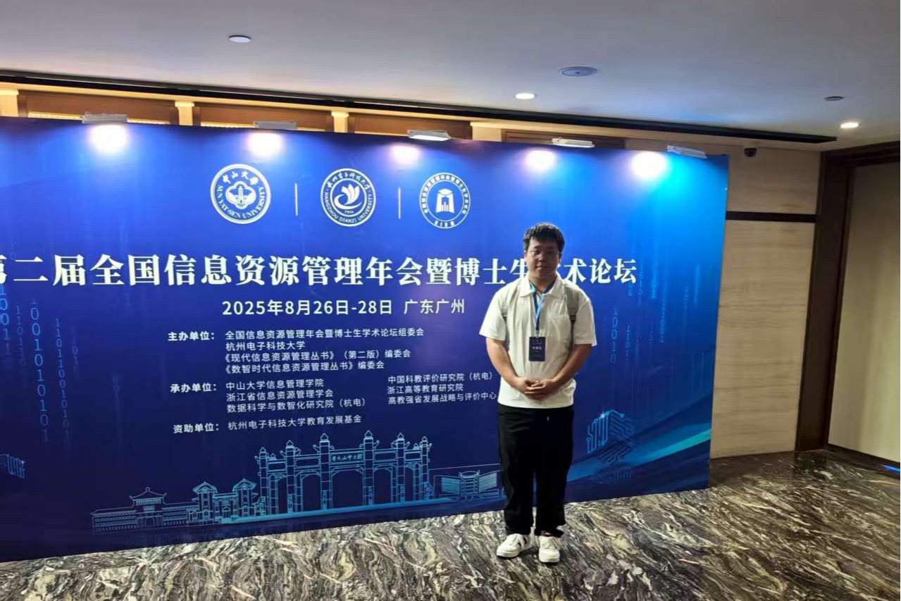 2025年8月26日至28日,第二届全国信息资源管理年会暨博士生学术论坛于广州顺利举行。本次大会以“信息资源数据要素与新质生产力双向赋能发展研究”为主题,由全国信息资源管理年会暨博士生学术论坛组委会、杭州电子科技大学等主办,中山大学信息管理学院、中国科教评价研究院(杭电)、浙江省信息资源管理学会、浙江高等教育研究院等联合承办。来自北京大学、武汉大学、吉林大学、南京大学、中国人民大学、南开大学、四川大学等98家单位的专家学者齐聚广州,围绕信息资源管理前沿领域展开学术交流。