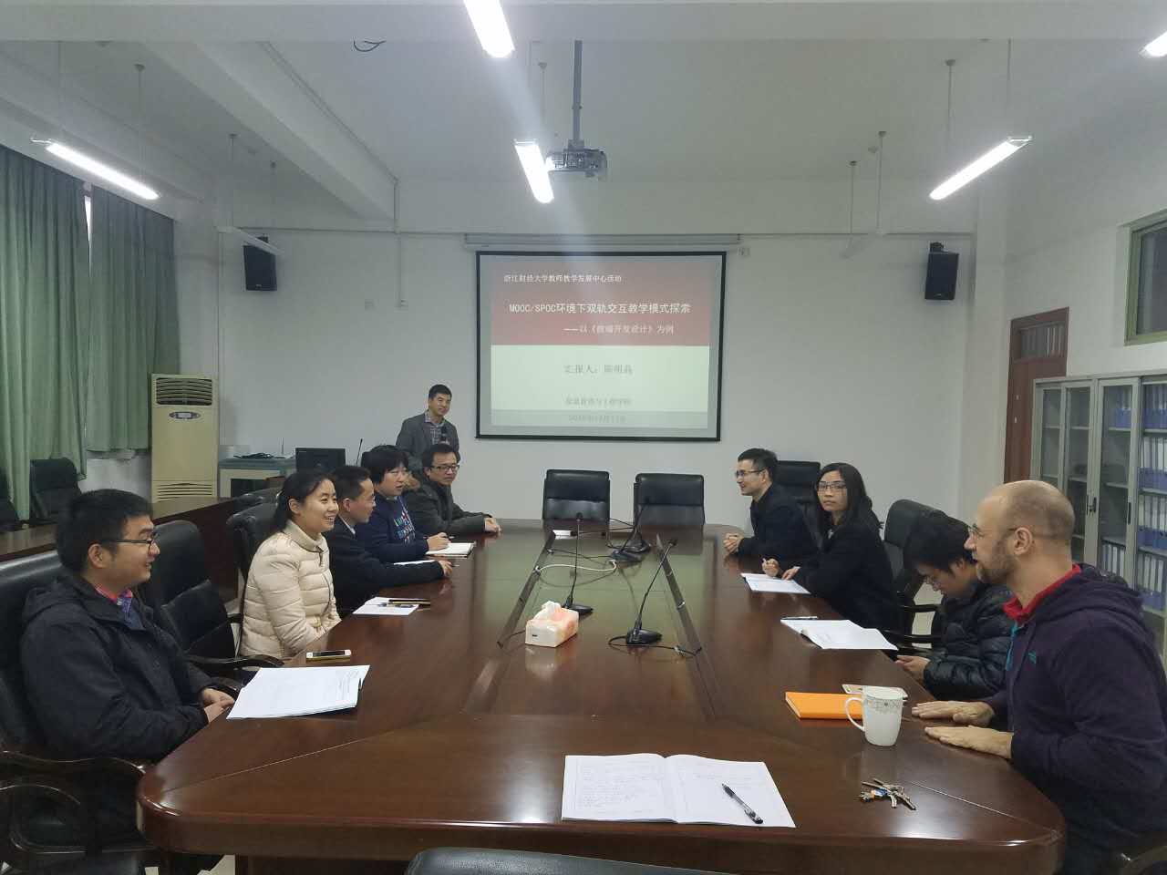 2016年12月13日14:00,信工学院电子商务系主任陈明晶老师在9-404会议室做了题为“MOOC/SPOC环境下双轨交互教学模式探索”的讲座。各系负责人,MOOC项目的负责人参加此次讲座并进行了研讨,讲座及研讨由副院长陈远高老师主持。
