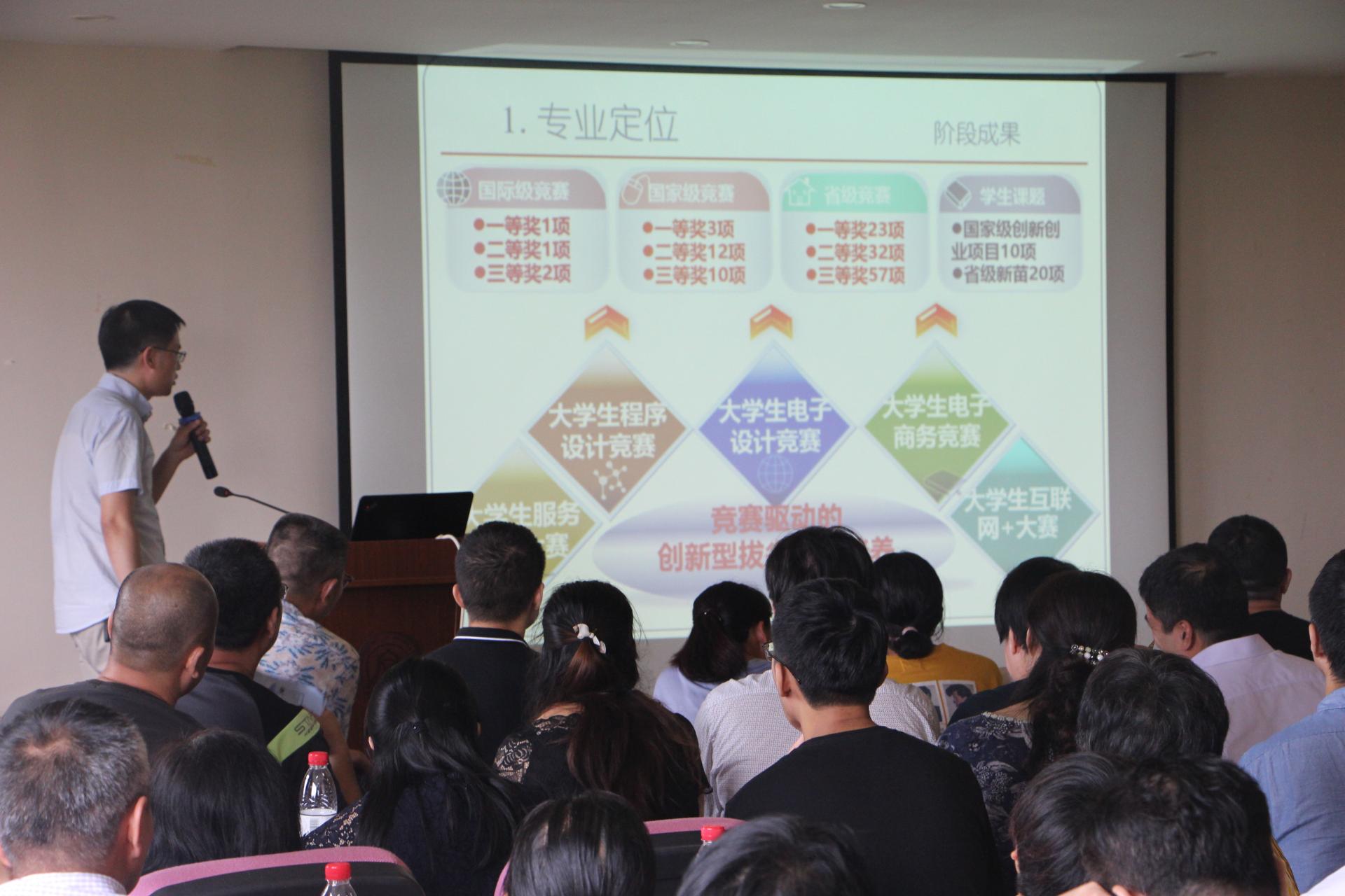 信息管理与信息系统主任隆清琦进行了信息专业定位与人才培养的汇报,对专业的历史沿革、师资队伍、阶段成果、培养目标、课程体系以及就业领域进行了简单讲解。信息管理与信息系统专业作为浙江省“十三五”唯一评审类信息管理与信息系统特色专业,在财经大学的背景依托下,培养具备现代经济管理理论基础、信息技术知识及应用能力的知识和能力复合型高级人才。在近年来的培养中,成果也十分可喜。