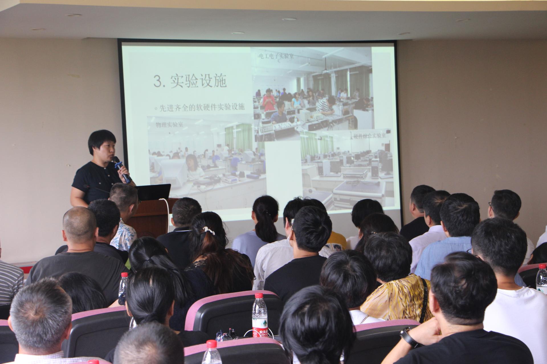 计算机系主任刘亚楠为大家说明了计算机专业的专业概况、师资队伍、实验设施、培养方案以及学生发展。计算机科学与技术专业培养面向智能经济领域,从事计算机与人工智能应用研究、系统设计开发与管理等工作的德才兼备的应用型高级人才。学院为学生们配置完备的设施,制定合理的计划,为学生们打造良好的学习环境。