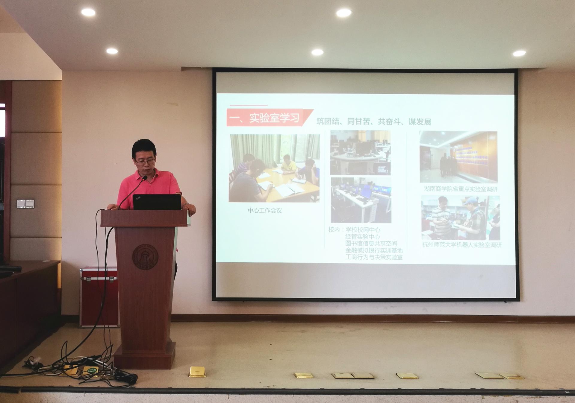 信息管理系主任隆清琦老师展示了两年来取得的成果和业绩,深刻的剖析存在的问题和不足之处,并对此提出相关对策。