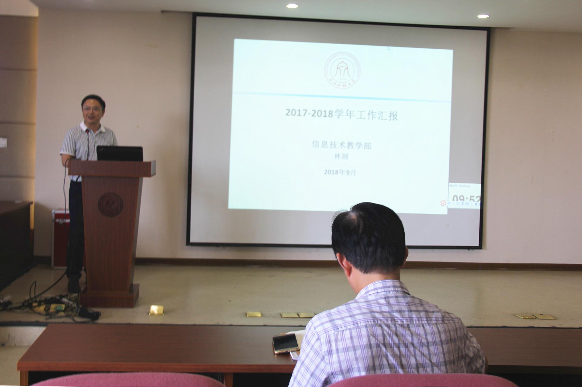 信息技术部林剑老师介绍了信息技术部体系构建、课程建设和教研活动,让大家更好的了解和参与信息技术部工作。